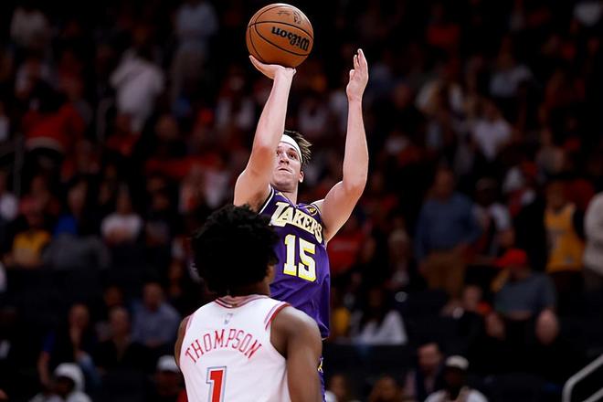 本场比赛中,湖人的先发后场大将奥斯汀-里夫斯(Austin Reaves)的个人状态其实并不是非常理想,但是他还是展现出了不错的调整能力的。里夫斯全场出场38分31秒,投篮9中4,三分线外3中1,罚球6中5,得到了14分3篮板8助攻1盖帽的数据,还有1次失误和3次犯规,正负值为+6。由于卢卡-东契奇(Luka Doncic)和勒布朗-詹姆斯(LeBron James)都手风颇顺,特别是詹姆斯,更是几乎打出了百发百中的效率,而里夫斯本人的状态似乎也并不是特别理想,因此里夫斯主动减少了自己的出手次数,他也没有得到更多的分数。不过里夫斯在组织和串联进攻方面的表现还是相当不错的,他也是能够给队友制造不少机会的。里夫斯在防守端也算是比较努力的,也是起到了一定的作用的。总体来看,里夫斯在本场比赛中还是在状态一般的情况下调整了自己的打法,并且为球队的胜利做出了自己的贡献。